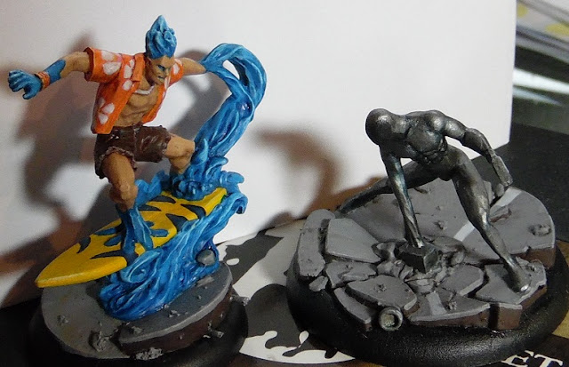 Also slightly extended the water using some putty to balance the wave effect on top of a custom, ruined urban base. Looks particularly cool on an urban table and when facing off against Dr. Mercury. So not entirely happy with all the individual elements of the model, but as a whole he looks great on the tabletop.